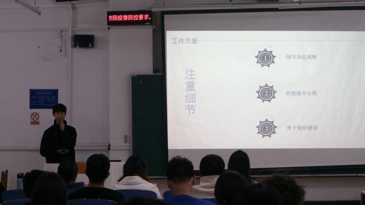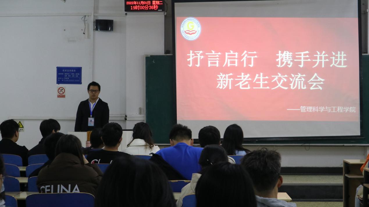 11月1日,我院在三教B101召开以“抒言启行、携手并进”为主题的新老生交流会。2019级信管1班句景怡、2020级信管2班毛泽昀、2020级工程管理1班王媛媛、2020级信管2班李刻欣、2020级工程管理2班齐晓龙受邀参加此次交流会,2022级部分学生代表参加,其他学生通过腾讯会议平台观看。
