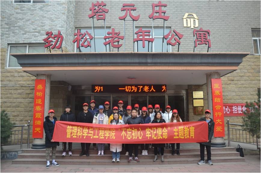 11月29日,管理科学与工程学院在塔元庄劲松老年公寓开展了“不忘初心,牢记使命”主题教育志愿服务活动。学院团委书记张艳娥、教务办公室主任马芸芸、张培兴博士以及我院志愿者团队参加了本次活动。