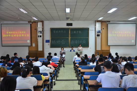 5月13日,管理科学与工程学院在第三教学楼C225教室举行运动会表彰大会。学院党委书记高永芳,副院长李伟红,党政办公室主任孟祥燕,辅导员王芳、赵品苍出席,运动员和大一全体学生参加。
