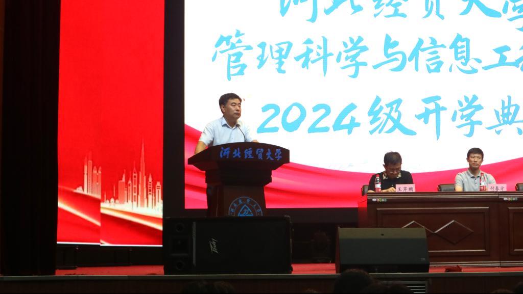 王剑彪代表学院向全体2024级新生表示热烈欢迎,他鼓励同学们以积极的心态投入大学的学习生活,始终保持对知识的敬重。他表示,大学生活绚丽多彩,期望同学们踊跃参与社团活动和竞赛实践,广交朋友,收获真挚友谊与茁壮成长。同时,提醒同学们珍惜时光,把握当下,勇敢地去探索、质疑、尝试;学会自我管理,遵守法律法规,秉持诚信做人,做到包容合作,以高度的责任感奋力成为国家的栋梁之材。