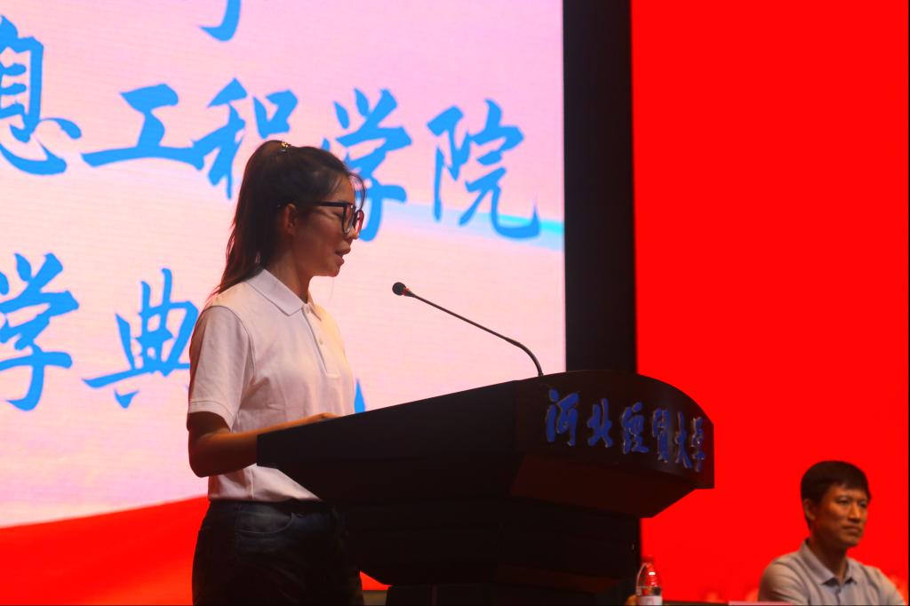 2022级人工智能1班肖京作为在校生代表发言。肖京作为国家奖学金获得者,为学弟学妹们树立了榜样。她对“如何度过充实有意义的四年大学生活”发表了自己的见解,并鼓励新同学们珍惜四年大学时光,在这个充满激情与梦想的大学校园里实现自己的人生价值。