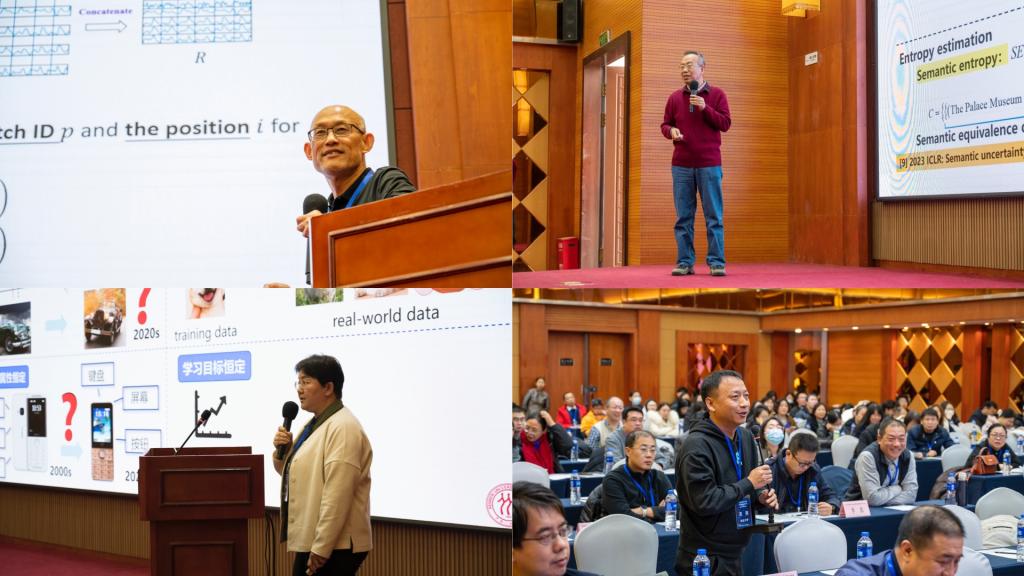 本次学术年会特邀三位国内机器学习领域的顶尖学者作前沿学术报告。南京航空航天大学陈松灿教授探讨了《时间序列的一般表示学习》,该报告主要聚焦于如何从动态、复杂的时间数据中提取普适而强大的特征表示,为预测、分类等下游任务奠定基础。深圳大学王熙照教授分享了《大模型推理中的不确定性建模》,指出深入剖析大模型输出结果中的不确定性来源与量化方法,对提升模型可靠性、实现可信AI至关重要。中国人民大学赵素云教授阐述了《面向开放环境的半监督学习范式及泛化分析》,为面对现实世界中数据标注匮乏且环境不断演变的挑战,提出了新的学习范式与理论框架以增强模型在开放环境下的适应与泛化能力。
