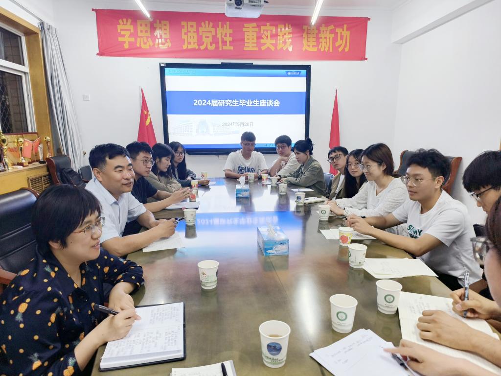 5月20日,我院院长孙立辉、研究生辅导员曹洋与毕业生、在校生代表座谈。师生就优化研究生培养、管理过程充分讨论。孙立辉希望毕业生们坚定理想信念,勇担时代重任,奔向属于自己的锦绣前程。同学们表达了对学院的深厚情感和对学院发展的美好期待。