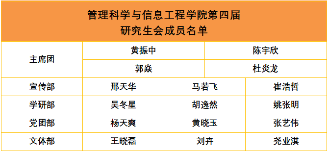我院研究生会换届仪式圆满结束,现公布各部门成员名单: