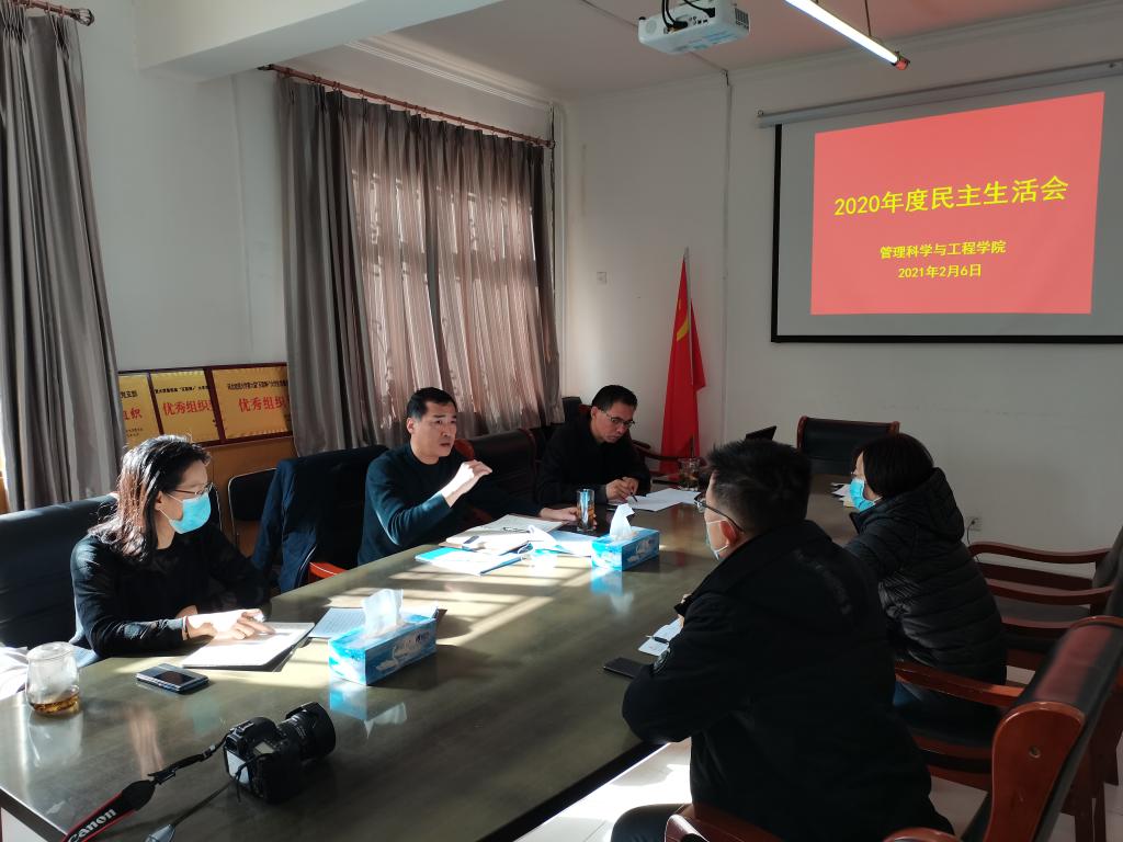 根据《中共6776永利集团委员会2020年度处级以上党员领导干部民主生活会实施方案》要求,2021年2月6日,我院在学院会议室召开了处级领导干部民主生活会。学院党委书记高永芳、院长祁红梅、党委副书记田蓁子3位同志参加了会议,学院党委委员王芹鹏和宋智广列席会议。校党委常委、副校长张秀山出席并讲话。