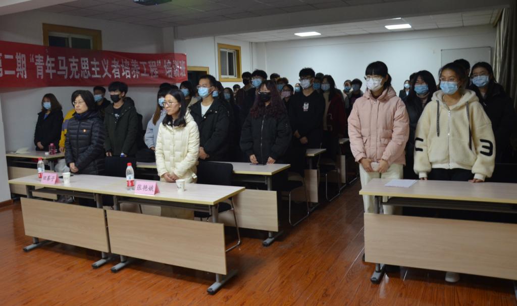 11月23日晚,我院在第一教学楼408教室举行第二期青年马克思主义者培养工程开班仪式,学院党委副书记田蓁子、学院团委书记张艳娥以及54名学员参加。