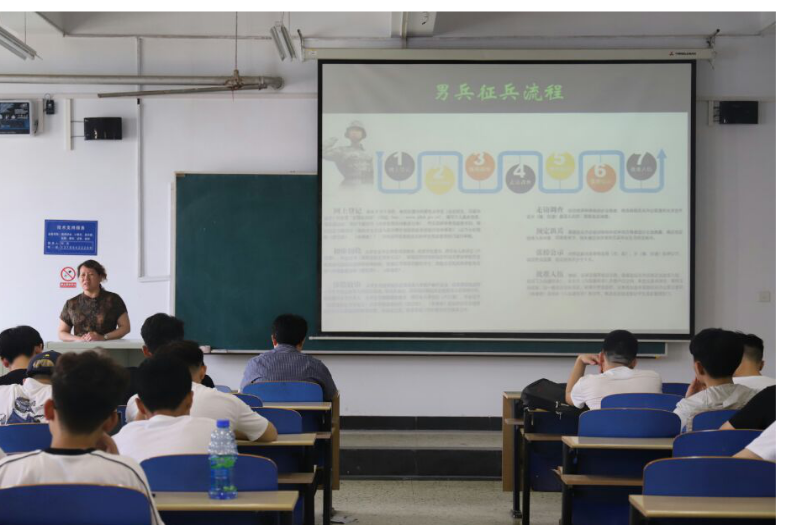 会上,张晓军传达了我校征兵工作会议精神,并从国防建设和自身成长两方面阐述了大学生参军的重要意义。她强调大学生参军是关系国家安全与稳定的一项重要工作,同学们要积极响应国家号召,踊跃报名应征,到部队中成长和锻炼自己,为国防事业做出贡献。宋智广详细介绍了大学生参军在学费资助、升学就业等方面的相关政策和应征流程,并鼓励学生们积极报名参军。