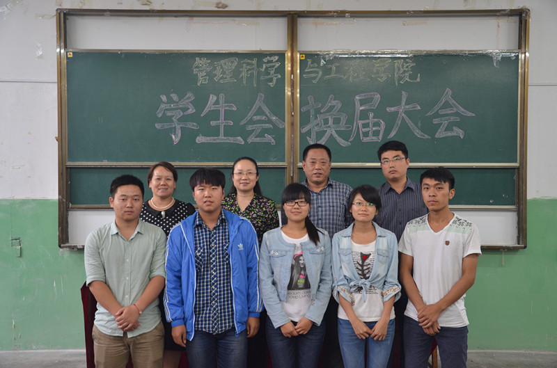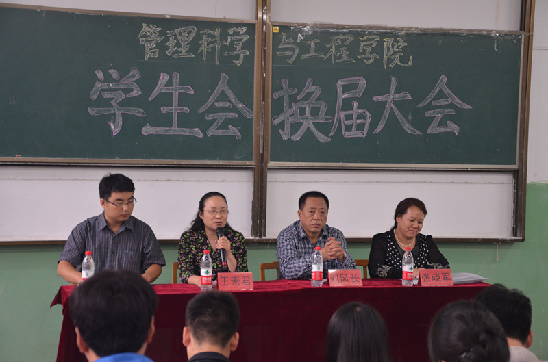 2014年9月28日,管理科学与工程学院于第一阶梯教室召开学院学生会团总支换届大会。学院党总支书记刘风长,院长王素君,党总支副书记张晓军,团总支书记宋智广出席此次大会。学院第一、第二届学生会团总支全体成员参加此次大会。