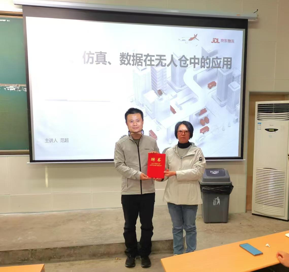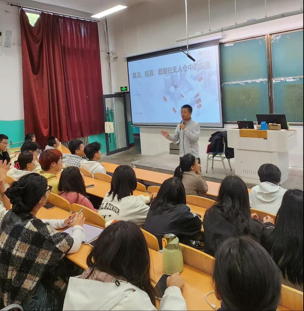 范博士结合自己在京东物流从事算法研究工作六年来的体会,结合算法、仿真、数据在京东无人仓中的应用,以加强物流大数据采集、分析和应用,提升物流数据价值为主题,向同学们诠释了“数字化创新是企业物流做大做强的关键”;并用实际案例告诉同学们,做为数智时代的物流专业大学生,要想在激烈的就业市场中站稳脚跟,必须清晰认识数字化背景下物流管理专业毕业生所面临的机遇与挑战,积极在数字化物流管理模式的知识和实践体系中学习,增强自身的综合竞争力。