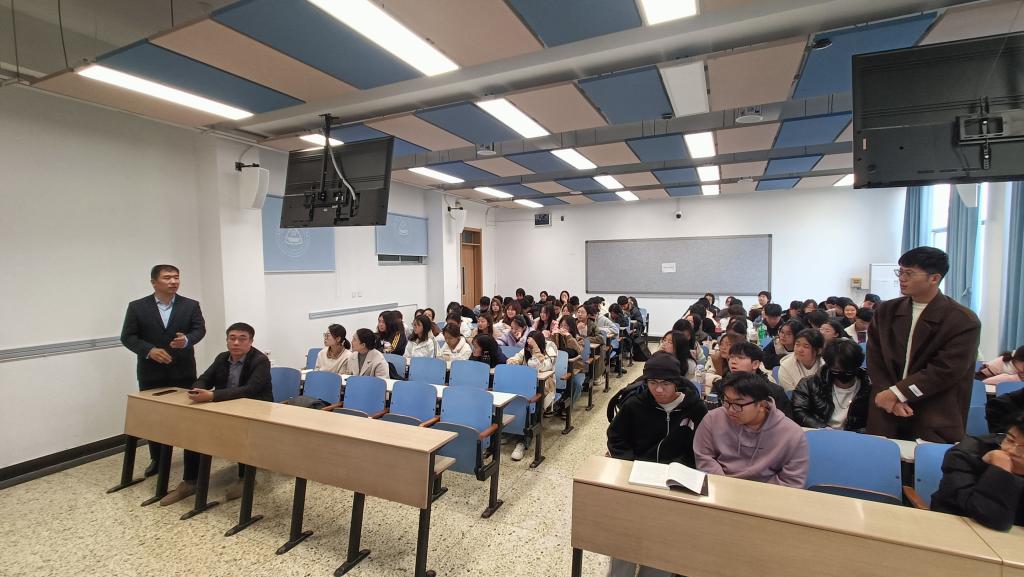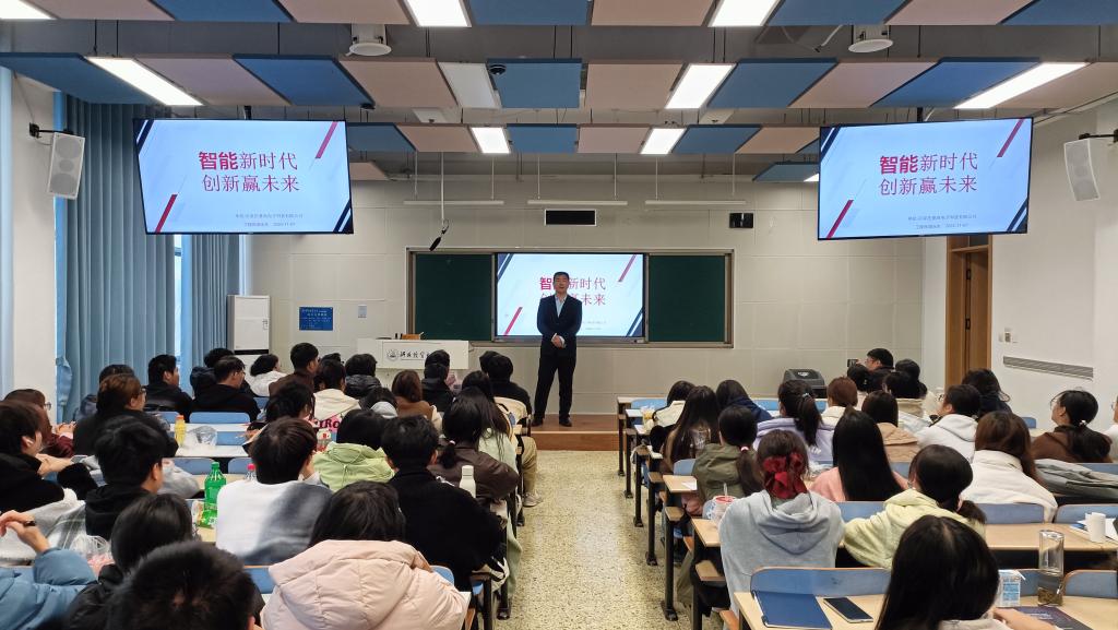 为强化数据科学与大数据技术专业一年级学生对本专业的了解,11月7日,yl6776永利集团数据科学与大数据技术系邀请了石家庄赛高电子科技有限公司总工程师樊永生在三教A304教室进行了题为《智能新时代、创新赢未来》的专题讲座。石家庄赛高电子科技有限公司总裁李铮、系主任魏若岩、全体24级数据科学与大数据技术专业学生以及部分教师代表参加了此次讲座。