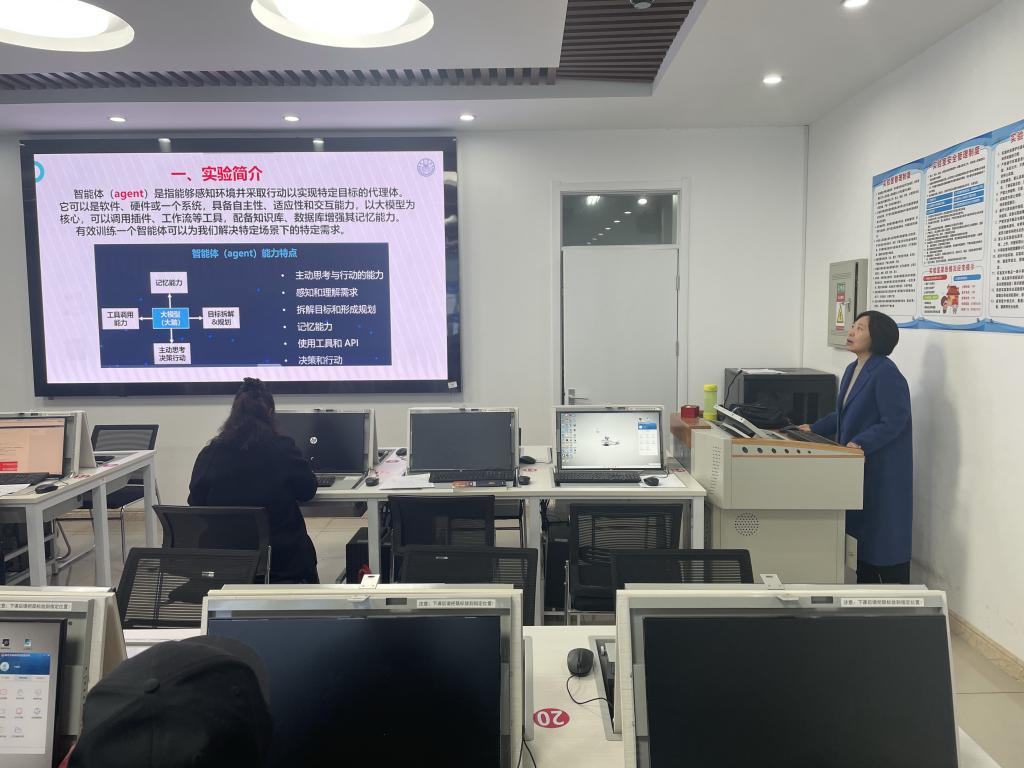 张艳肖老师围绕“实验五:智能体的应用与实践”,系统演示了智能体的搭建流程与开发技巧,强调“做中学、学中创”,着力培养学生工程化思维与解决复杂问题的能力。