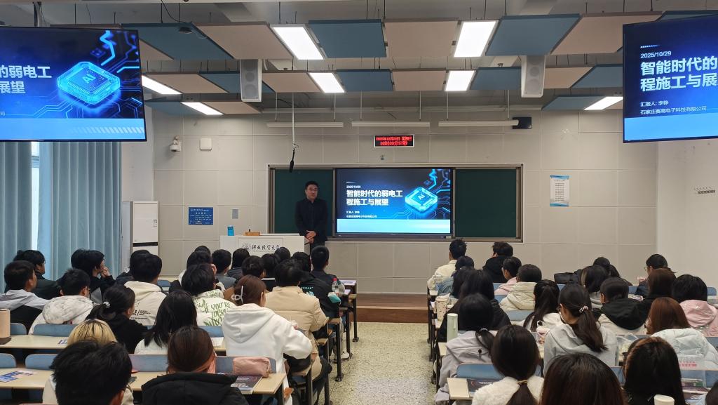 为强化数据科学与大数据技术专业一年级学生对本专业的了解,10月29日上午,yl6776永利集团数据科学与大数据技术系邀请了石家庄赛高电子科技有限公司总经理李铮在三教A302教室进行了题为《智能时代的弱电工程施工与展望》的专题讲座。系主任魏若岩、全体25级数据科学与大数据技术专业学生以及部分教师代表参加了此次讲座。