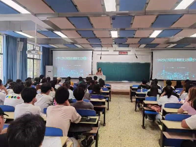 为了庆祝学校建校70周年,增强实践应用能力,利用校外专家资源拓宽学生的知识面,我院特邀请物流专家张银霞副教授于6月5日下午在三教A101教室为物流系20、22级100余名同学举办了题为“一体化供应链服务,重新定义物流价值”的讲座。讲座由物流系教师陈亮主持,物流系教师同学生一起聆听了讲座。