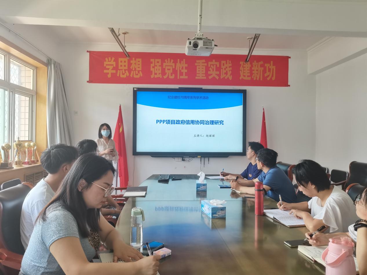 6月12日下午,我院邀请赵丽丽博士作题为“PPP项目政府信用协同治理研究”学术讲座。讲座由副院长王芹鹏主持,学院教师及研究生参加。此活动是“纪念建校70周年系列学术讲座之一”。