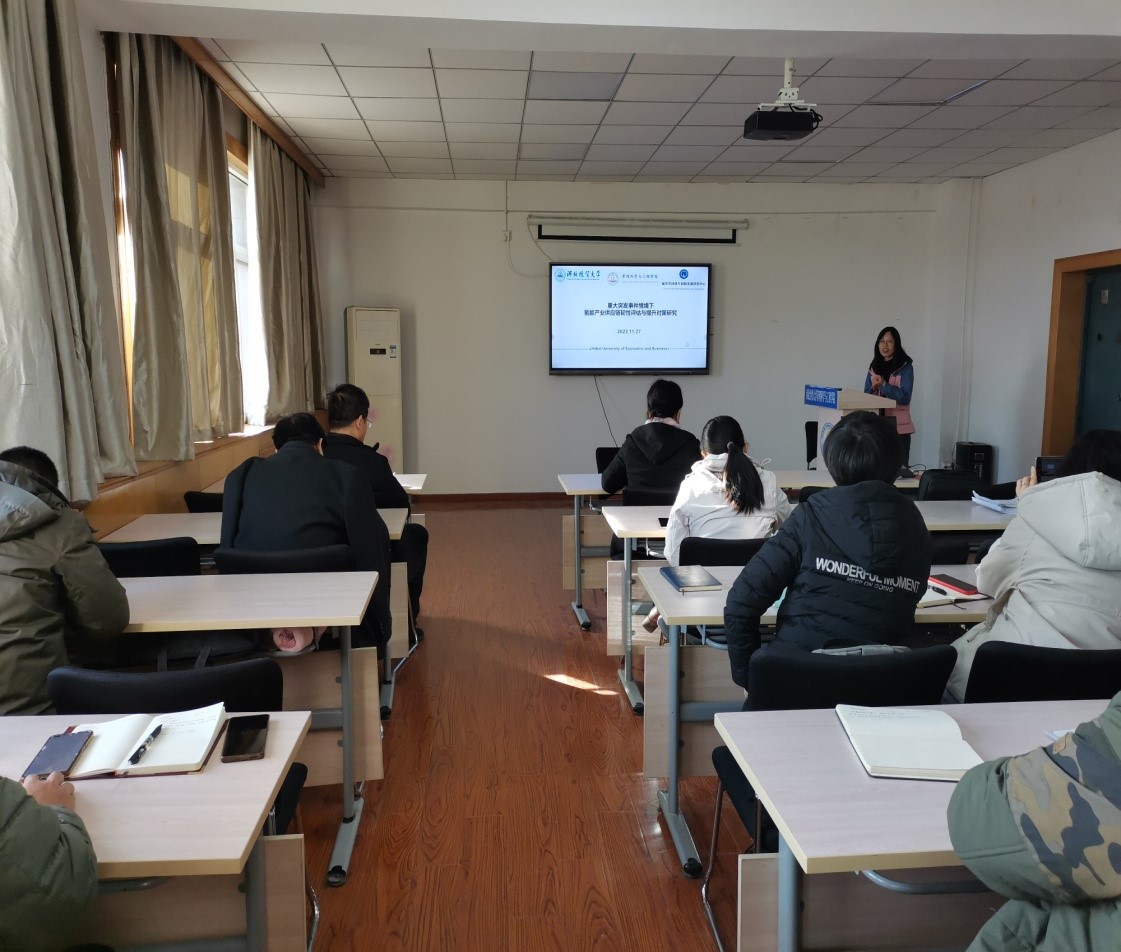 11月30日下午,我院郭立硕博士结合参与撰写的国家级重大基金项目,作了题为“重大突发事件情境下氢能产业供应链韧性评估与提升对策研究”的学术讲座,学院教师及研究生参加。