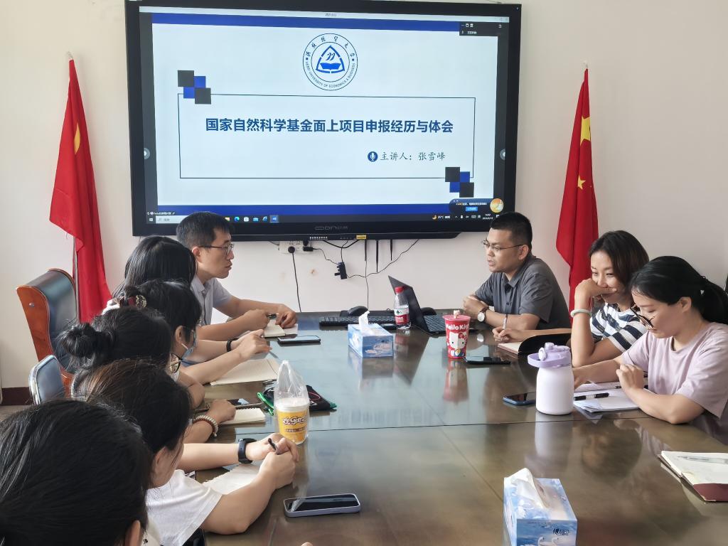 张雪峰从“项目选题”“内容撰写”“研究基础”等几个方面,结合个人申报国家自然科学基金面上项目的经历,介绍了申报过程中的几点注意事项及心得体会。分享会结束后,在场教师就国自科申报的相关问题进行了讨论。