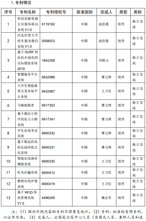 为实现人才培养总体目标,示范中心做了如下工作:(1)聘请校内外专家做顾问,重构了专业课程体系,优化了人才培养方案。示范中心以社会需求为导向,构建与社会需求目标相匹配的专业课程体系和教学内容,实现专业规范与产业需求协调统一。(2)积极与石家庄物联网研究院等单位进行战略合作,积极引入企业资源和校外优质科研资源,培养学生综合运用能力,提高职业素养。(3)积极探索专业融合,自2019年开始学院和法学院联合开展了人工智能法学实验班、和金融学院联合开展了金融科技实验班,两个实验室均已步入正轨,2020年又与商学院、工商管理学院、旅游学院等联合开展了数字经济等4个新财经改革实验班,已实现了招生并进入培养阶段,实现了专业融合,扩大了专业影响力。